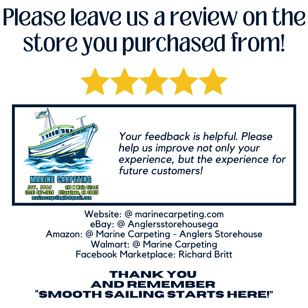 Since 1994, we’ve been supplying premium boat carpet and pontoon flooring from our headquarters in Attapulgus, Georgia. All of our glue down marine carpet includes black rubber backing for maximum grip and long lasting performance. We offer top marine products and trusted brands including Minn Kota, with free shipping to 48 of the 50 states in the USA and international shipping available. Find the boat carpet, vinyl, and accessories you need for a clean, reliable upgrade.
